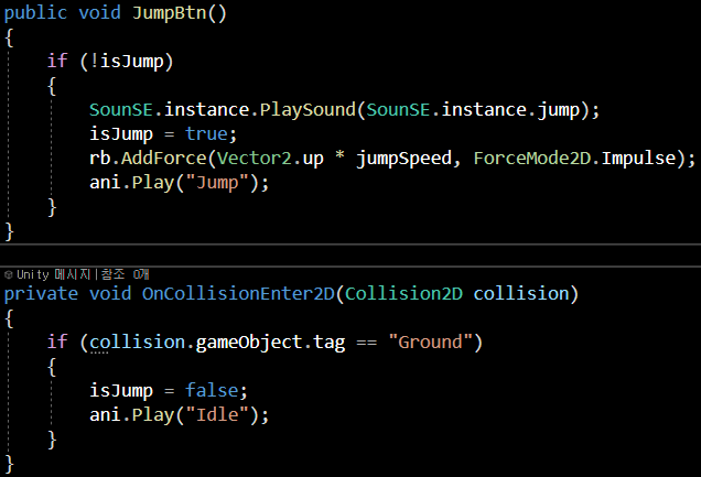 JumpBtn함수에! isJump의 조건문을 걸어 실행하게 했습니다.