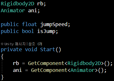 Rigdbody는 rb란 변수로 선언해 담아 왔고