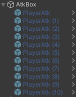 public GameObject [] atk을 사용하여 Atk(공격 물체) 들을 받아와 주었고