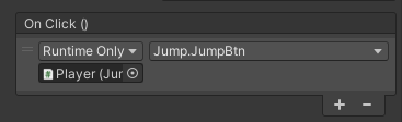 그리고 이 함수를 게임상에 존재하는 jump버튼의 OnClick 이벤트에서 클릭 시 실행되게 했습니다.