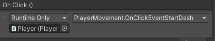 기존 코루틴으로 작업이 되어 있었으며, 조건문의 대쉬(Left Shift)를 입력 받는것 만 제외 하여주고 OnClickEvent에 사용하기 위하여 버튼에 연결을 시켜 주었습니다.