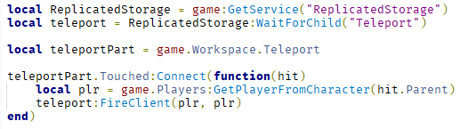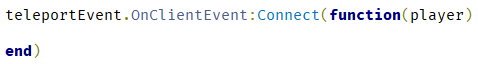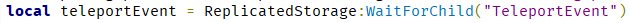 replicatedStorage에 있는 TeleportEvent를 받아 옵니다. (과정은 동일합니다.)