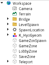 로블록스 스튜디오를 실행한 뒤 Workspace를 확인해 보면