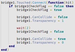 bridge 파트의 콜라이더를 false로 끄고, 투명도를 1로 완전히 없어진 것처럼 구현을 한 뒤