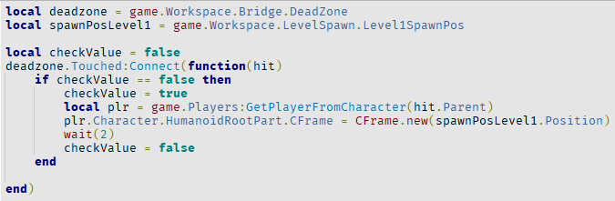 데드존의 스크립트는 서버 스크립트에서만 구현을 하였습니다.