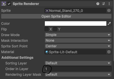 Sprite Renderer의 Order in Layer를 1로 조정해 주었습니다.