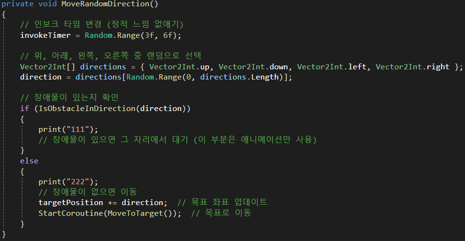 이 몬스터가 움직이는 함수 구현에서 Print("111") 이 계속 찍히는