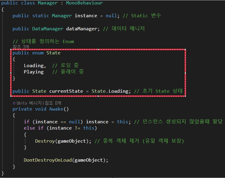 전체 흐름을 관리할 State는 Manager 스크립트에 추가하였습니다.
