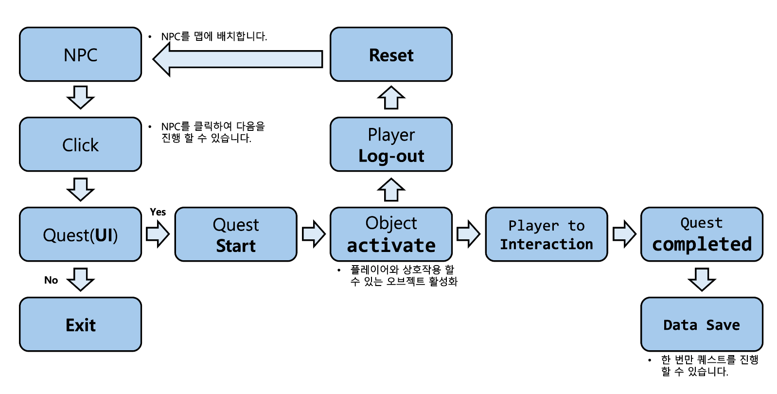 하지만 곰곰히 생각해 보니 초기 기획 흐름도에서 플레이어가 로그아웃을 하게 되면 '리셋'이 되고