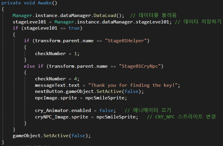 Cry Npc의 기능 구현과 Key Object의 기능 구현을 나누려고 일지를 나눈 이유도 있지만,