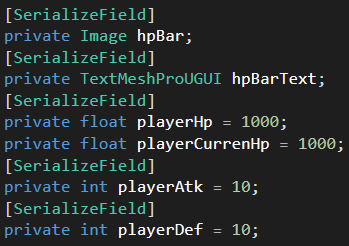 hpBar : fillAmount을 게이지처럼 사용하기 위함입니다.