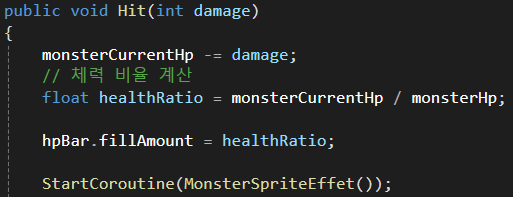 이번 작업은 몬스터의 HP Bar 관련 구현과 Hit() 함수