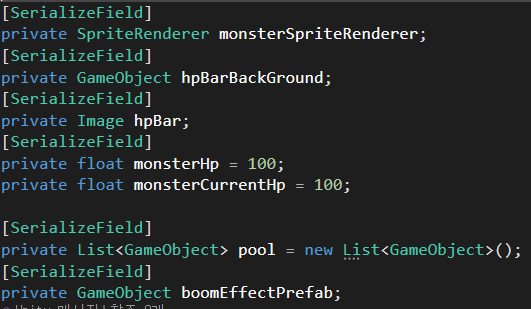 hpBarBackGround : 몬스터가 죽으면 비활성화하기 위해 받아온 오브젝트입니다.