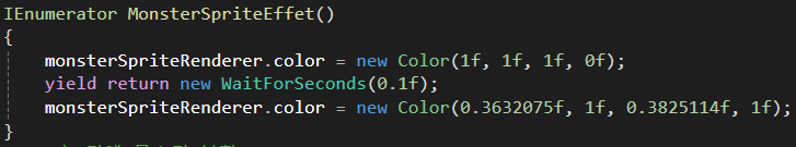 StartCoroutine()으로 실행될 MonsterSpriteEffet()는