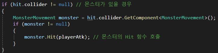 기존 몬스터를 감지하고 Hit()를 호출하는 로직에서