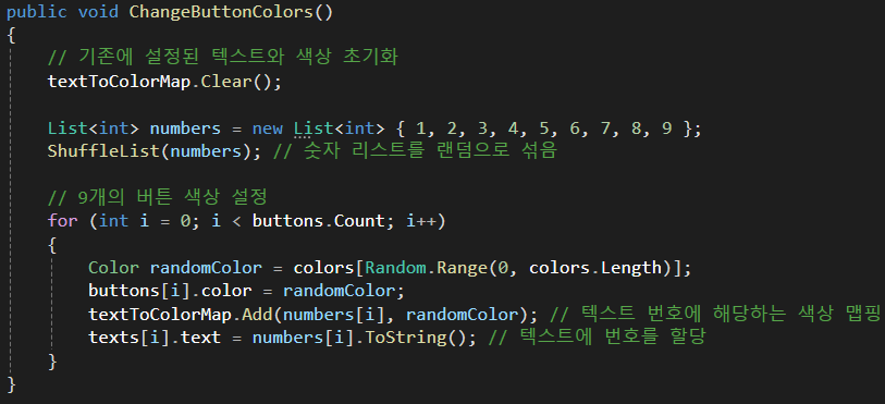 실질적인 로직은 OnEnable()에서 실행될 ChangeButtonColors() 함수입니다.