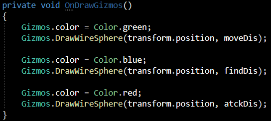 책을 통하여 지식을 얻게 된 점인데. 씬 뷰에서 거리 측정을 시각적으로 보여주는 OnDrawGizmos를 사용하면 보다 거리감을 쉽게 알 수 있다는 장점을 알았습니다.