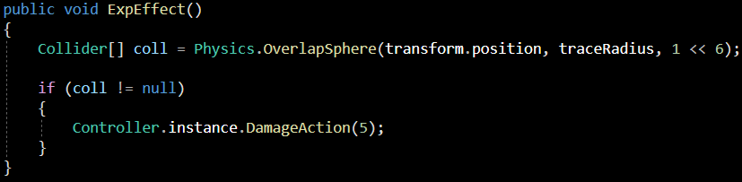 Bomb_Idle과 똑같이 Collider를 받아와 주는 OverLapSphere를 사용하였습니다.