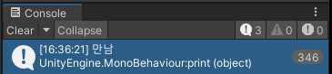 Debug.Log("만남")으로 출력을 해도 되지만,