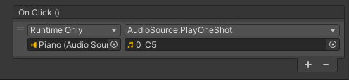 그리고 이 Piano 1의 함수를 On Click에서 클립을 넣어 실행되게 해 주면!