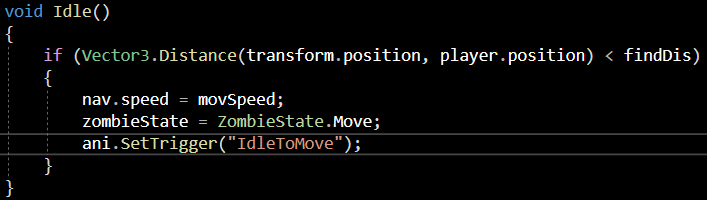 zonbie가 Idle 상태에서 Move상태로 넘어가는 Idle 함수 구현입니다.
