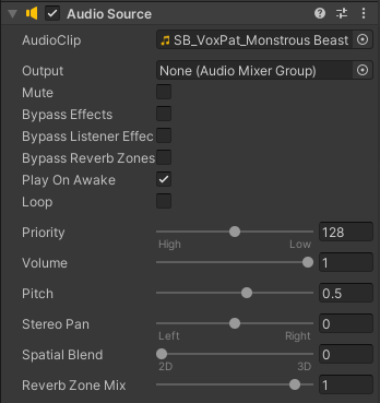 이후 audi.pitch = 0.5f를 이용해 오디오 재생 음 들이 너무 빠른 것 같아 재생되는 속도를 반절로 낮췄습니다.