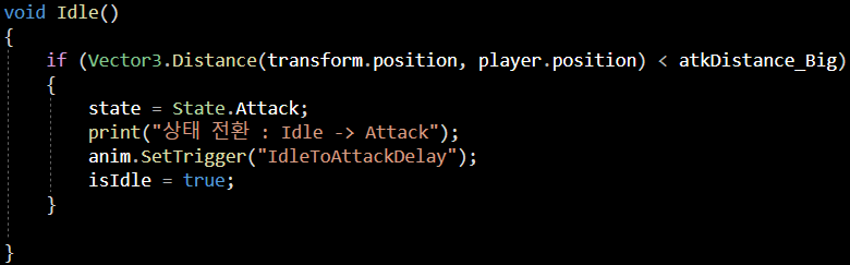Vector3.Distance(transform.position, player.position) > atkDistance_Small)드래곤의 atkDistance_Small의 범위 안에 플레이어가 안 들어와 있다면