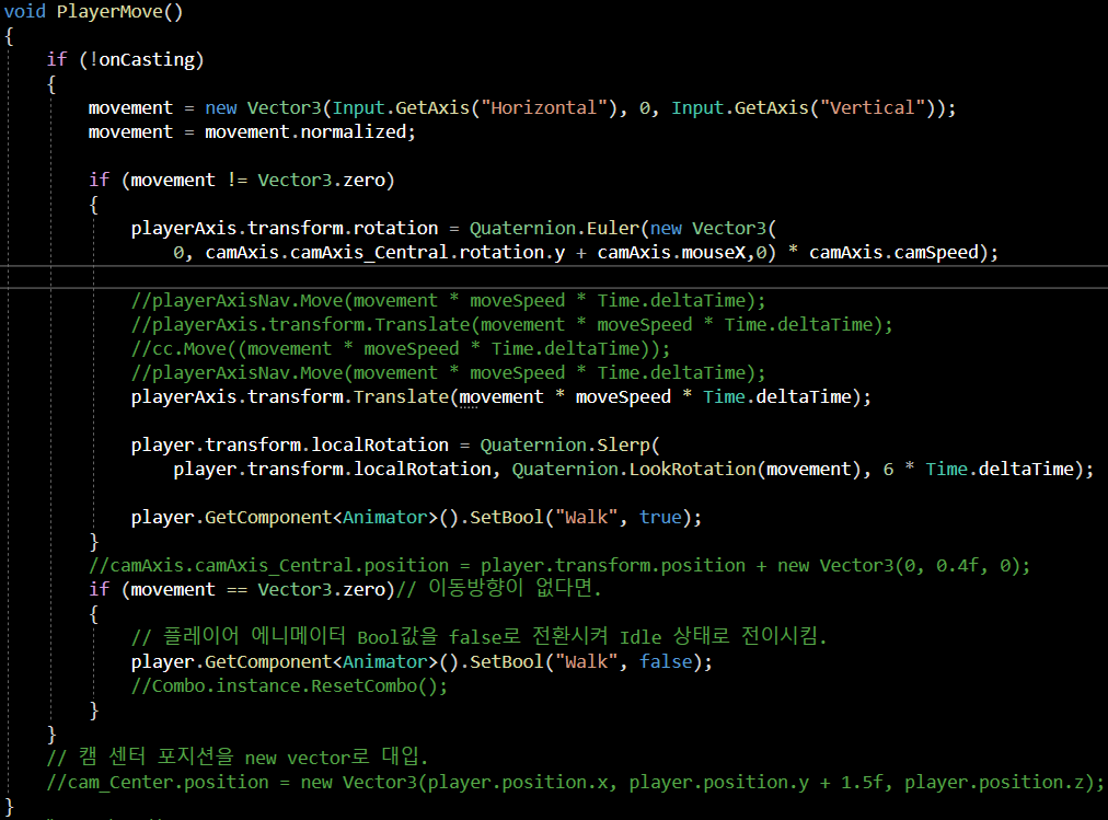 즉 onCasting == true인 상태에선 움직이지 못합니다.