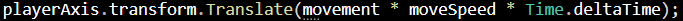 이건 Player(PlayerAxis)를 Translate 함수로 이동시켜 주는 모습입니다.