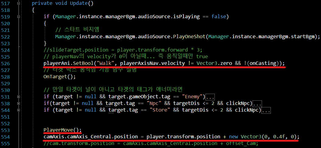 Move 함수가 끝난 후 CamController 스크립트로 바로 넘어가겠습니다.