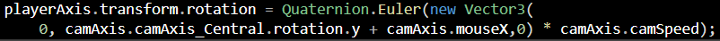 camAxis.mouseX : 는 CamController 스크립트의 mouseX += Input.GetAxis("Mouse X") 값입니다.