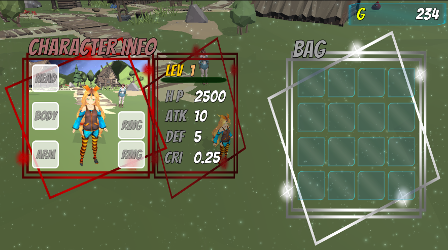 이번엔 캐릭터를 클릭/터치 시 활성화되어 켜지는 Info창 과 Bag 창을 같이 보시겠습니다.