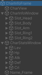 hierarchy에 있는 CharInfoFrame을 SetActive로 활성화시켜주는 동작입니다.