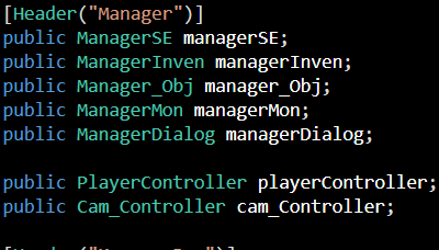 부 Manager들 이외에도 PlayerController를 받아와 player에게 손쉽게 접근도 가능합니다!!