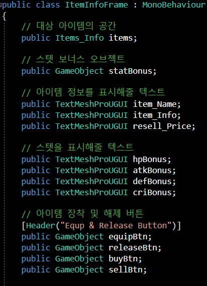 현재 item_Name / item_Info는 동기화를 해줄 ItemInfoFrame스크립트에서 제작되었고
