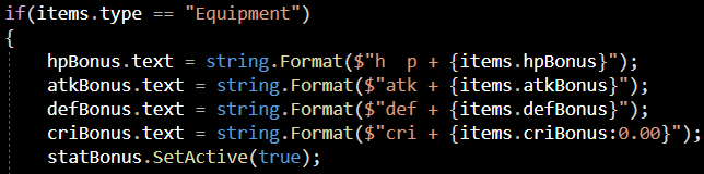이 statBonus는 아이템이 장비 타입일 시에만 활성화되게 해 주기 위함입니다.