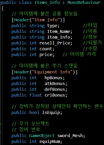 아이템에 입혀질 Item_Info 스크립트입니다.