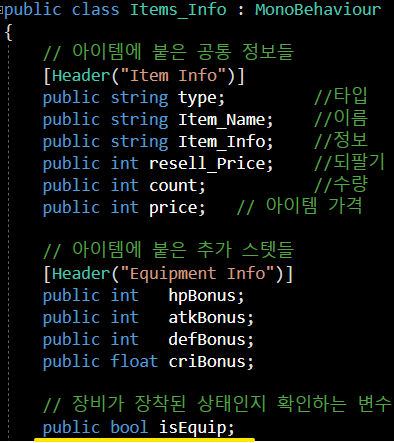 if (! items.isEquip) 아이템의 장착 중이 아닐 시입니다.