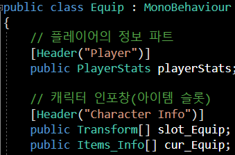 slot_Equip는 아이템 인포 창에 있는 슬롯들 이었습니다.