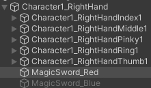 즉, 무기 아이템을 장착하면 그에 맞는 오브젝트가 활성화되는 구현입니다.