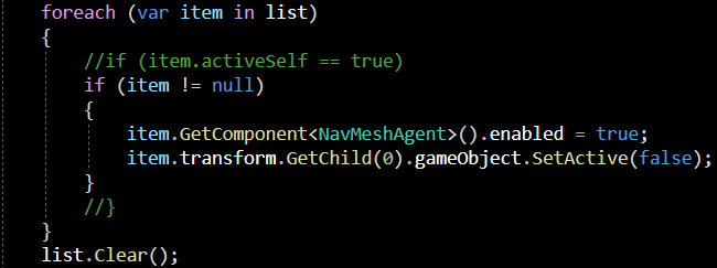 enemy_Nav_Enable 함수에서는 다시 foreach문으로 list를 다시 검색해주며