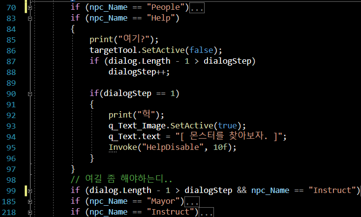 각 npc들 중 npc_Name이 Help라면? 의 조건문을 보시자면