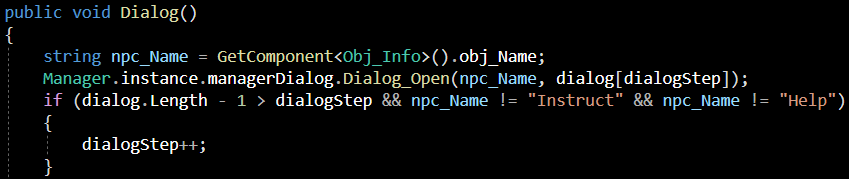 단순히 대화만 필요한 npc는 dialogStep++으로 증가를 시켜 주었으며