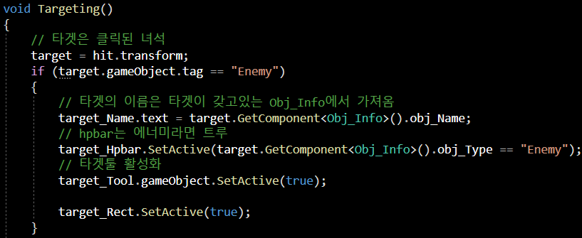 targeting 함수는 enemy를 클릭할 시 보았었는데 바로 살펴보겠습니다.