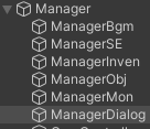 이 Manager 스크립트가 나머지 부 Manager들은 관리해 주는데