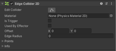 이 Edge Collider는 자유형으로 선으로 충돌을 만들 때 사용됩니다.