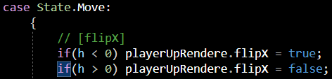 조건에 맞게 flipX를 true/false로 제어를 해 주었고