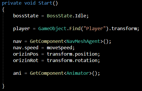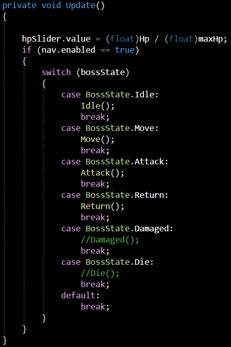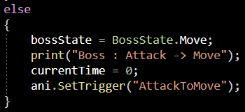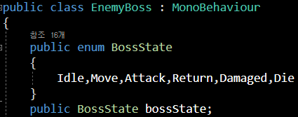 이며 이 열거형을 제어하기 위해 bossState의 변수를 선언해 주었습니다.