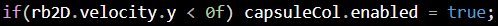 - 를 향한다면 콜라이더를 켜 주는 조건문을 Update 함수에서 작성했습니다.