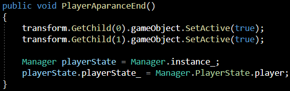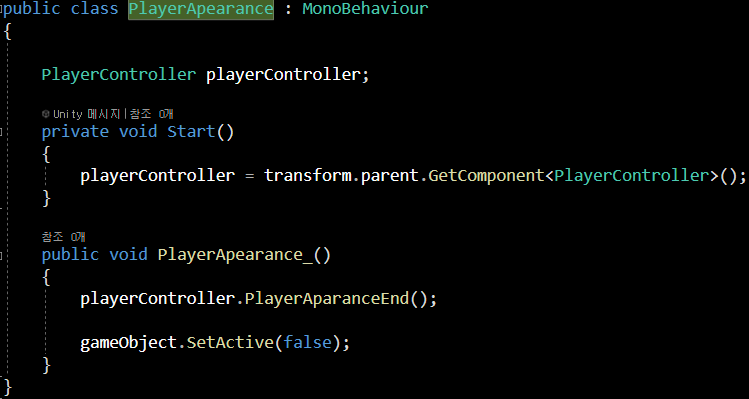playerController(PlayerController)에 있는 PlayerAparanceEnd함수를 실행시켜 줍니다.
